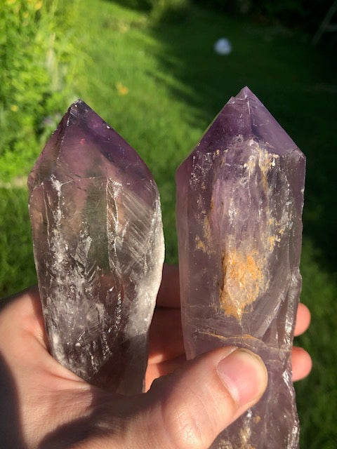 Wunderschöne seltene Amethyst Kristalle, die aufgrund ihrer Wuchsform auch Szepteramethyst oder auch Zahn genannt werden. Ganz besondere Rarität & Wunder der Natur die in keiner Sammlung fehlen dürfen.