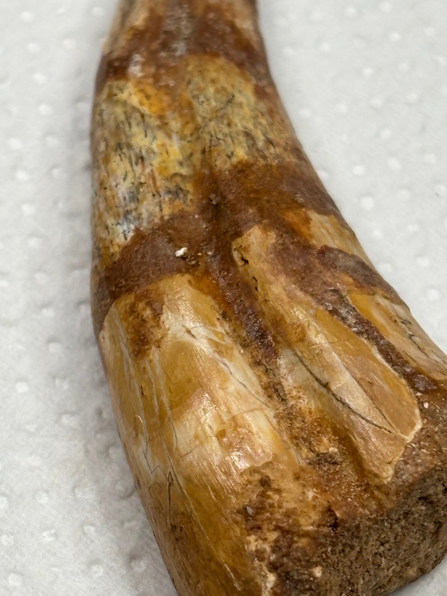 Das Fossil ist völlig naturbelassen und wurde nach der Bergung lediglich professionell mit einem dünnen Film aus Konsolidierungsmitteln stabilisiert, exakt so wie es auch in Museen weltweit üblich ist, um die langfristige Haltbarkeit zu sichern.