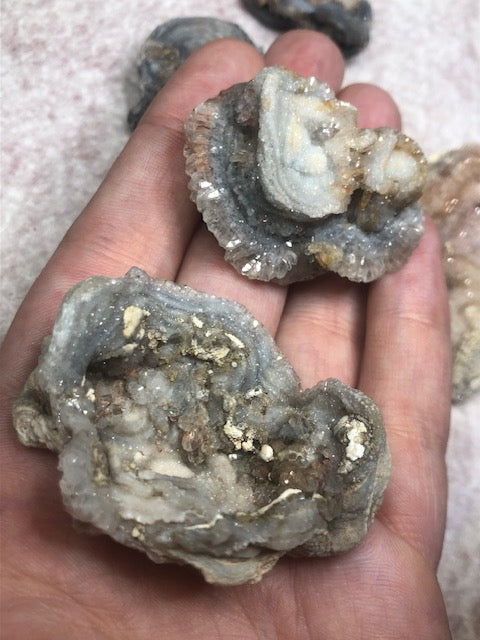 Natürliche Abscheidungen von heißen, kieselsäurehaltigen Quellen bildeten diese Chalcedon in Form sogenannter Rosetten ihre Form erinnert an Blüten & Pflanzen.