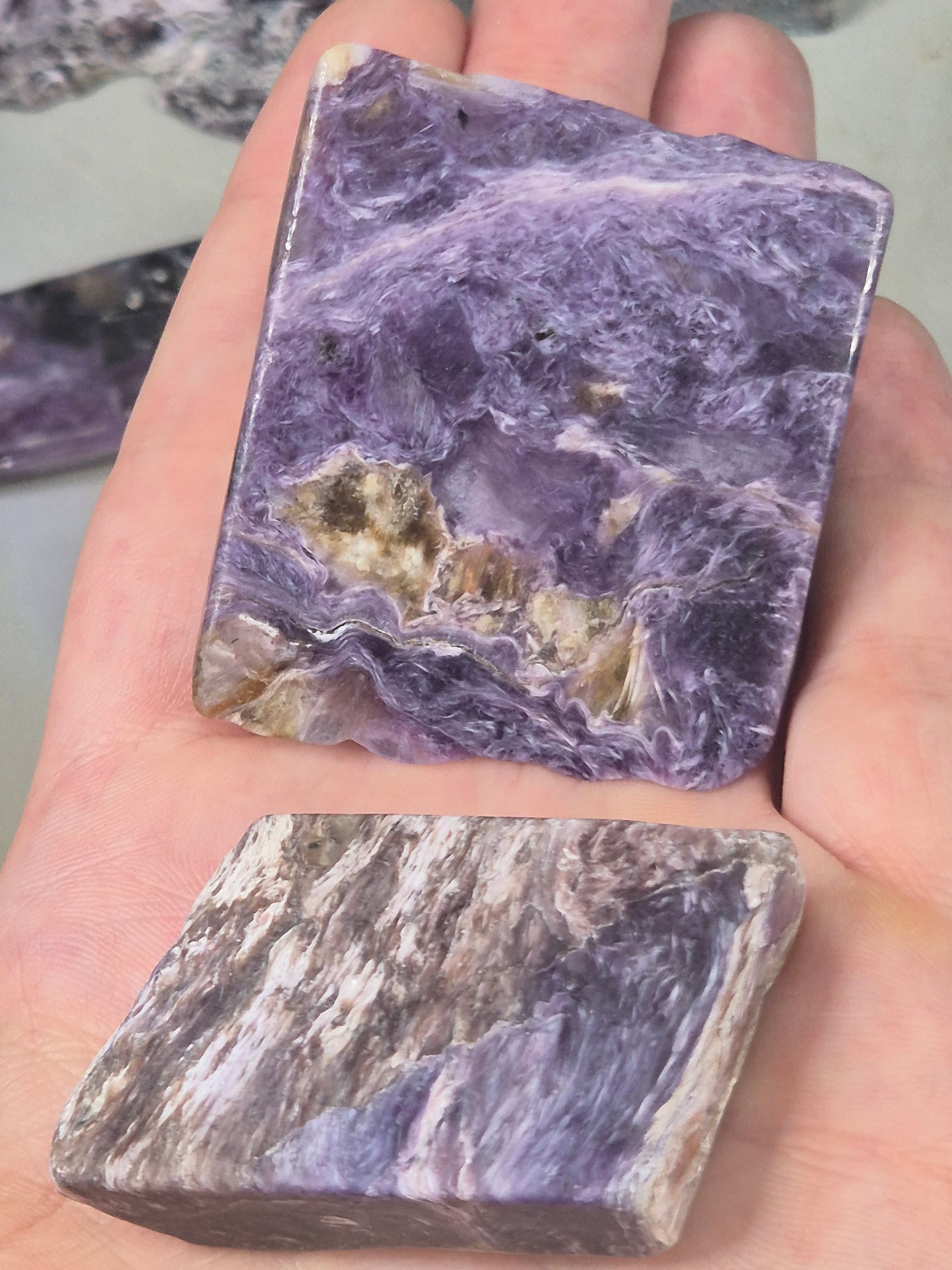 Der violette Heilstein hilft uns dabei, liegen gebliebene Arbeit, durch mehr Entschlossenheit, sowie Tatendrang & Struktur, zu erledigen, zusätzlich beschert uns Charoit nachts einen sehr erholsamen & tiefen Schlaf.
