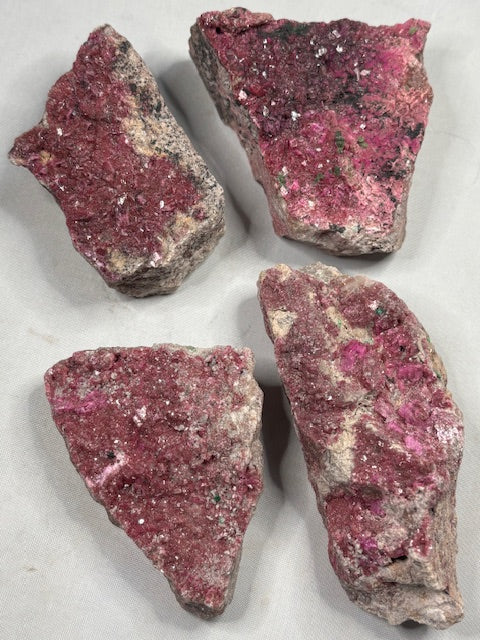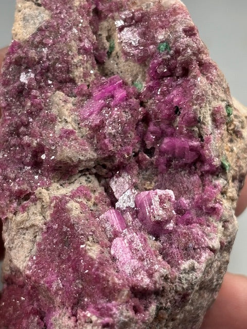 Wunderschöne in den typischen hellrosa bis magenta Farbtönen hochglänzende Cobaltcalcit, viele mit dem äußerst seltenem & begehrten grünen Kolwezit Mineral kugelig kristallisiert.