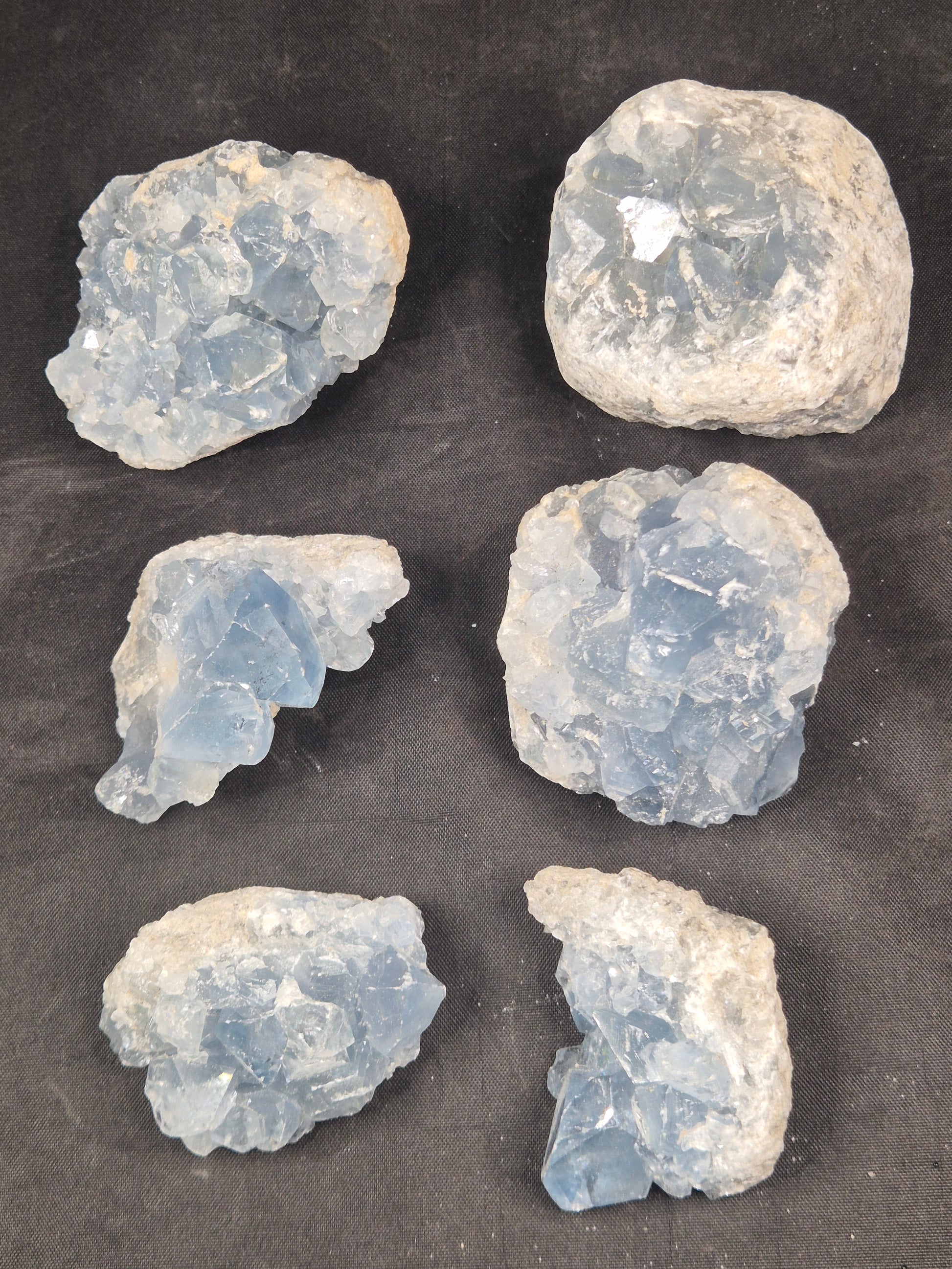 Völlig naturbelassene Edelsteine, teilweise mit außergewöhnlich großen Celestit Kristallen.