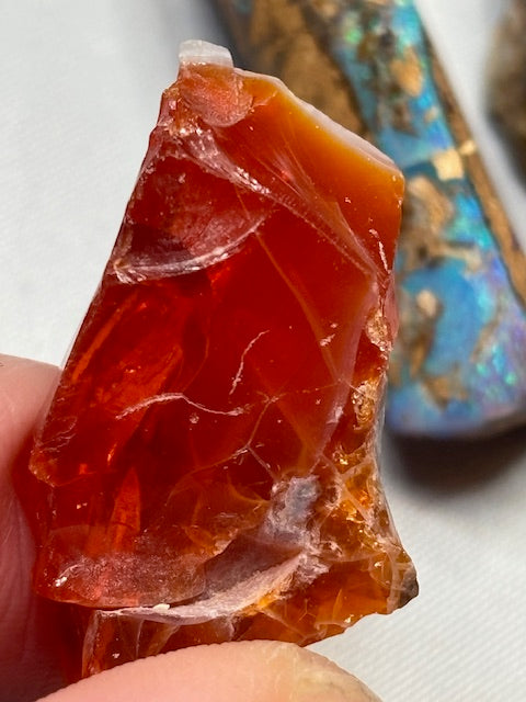 Der Feueropal hat eine Länge von ca. 25mm Breite von ca. 15mm & Höhe von ca. 10mm