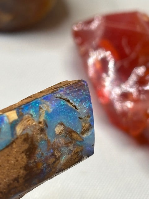 Edelopale roh verschiedene Sorten aus der ganzen Welt, Boulder Opal, Katzenaugenopal Chatoyance, Feueropal Edelsteinqualität