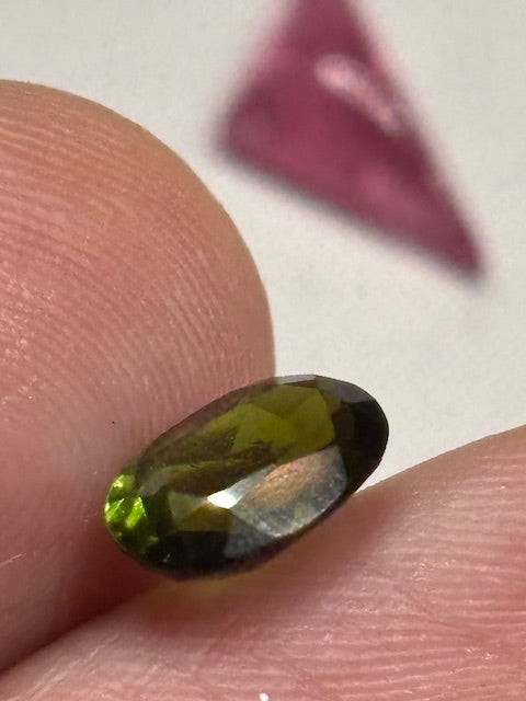 Nummer 3 auch ein Verdelith in bester Qualität jedoch in olivgrüner Farbe & ist ebenfalls im facettierten Rundschliff. Er hat einen Durchmesser von ca. 7mm & wiegt 1 Karat