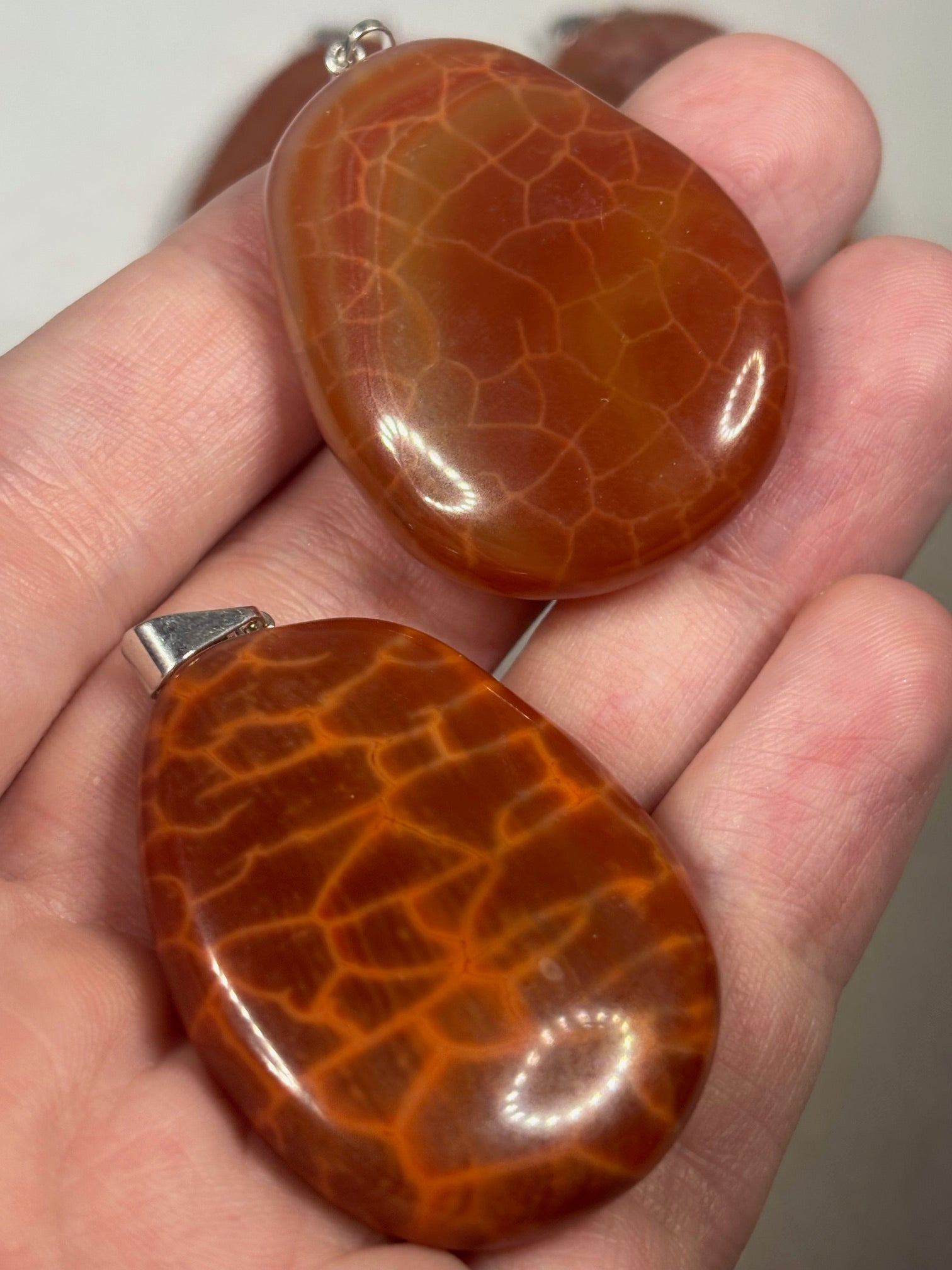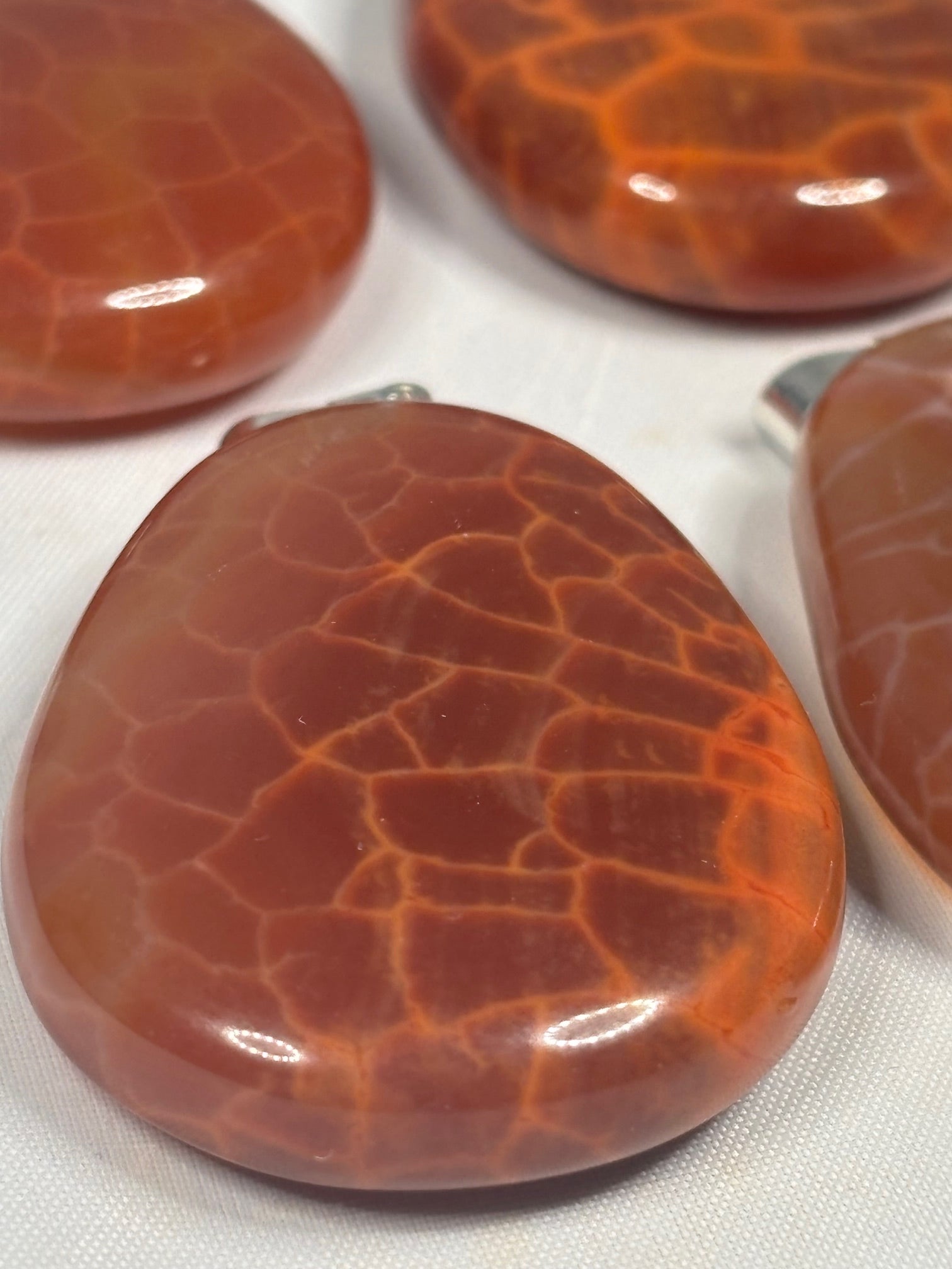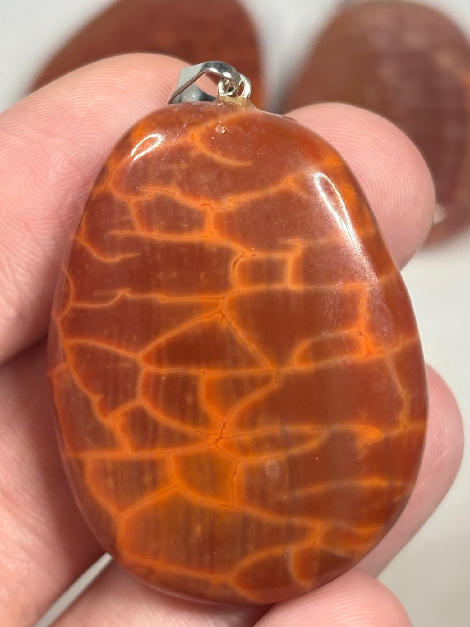 Wunderschöne orange- rot leuchtende, lichtdurchlässige & hochglanzpolierte Feuerachat Anhänger aus Brasilien.