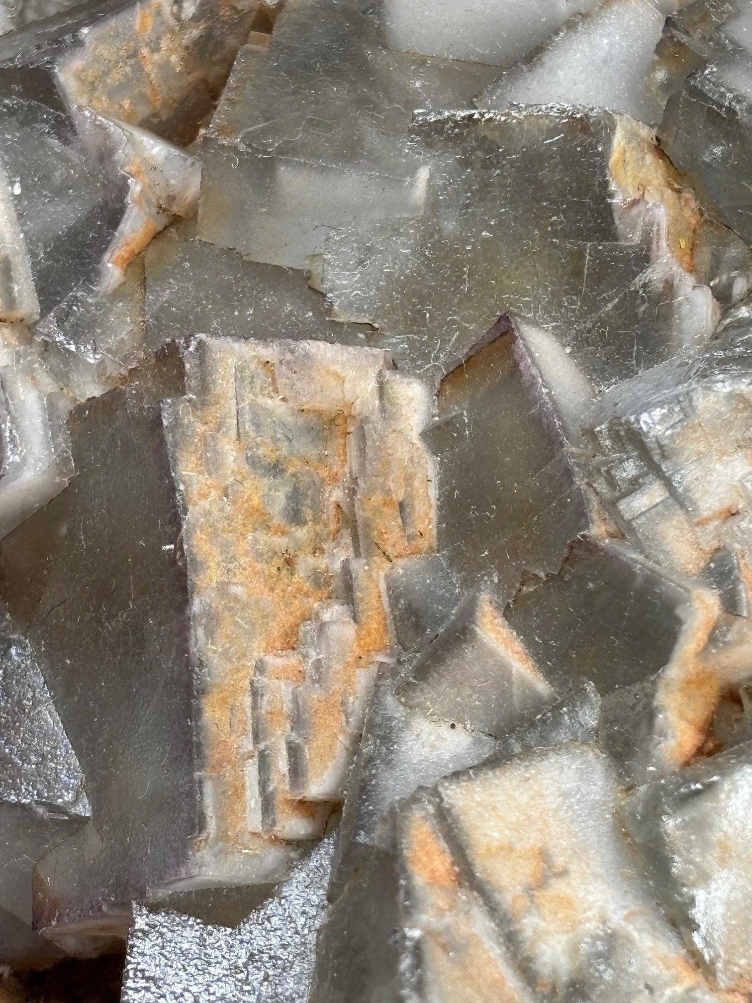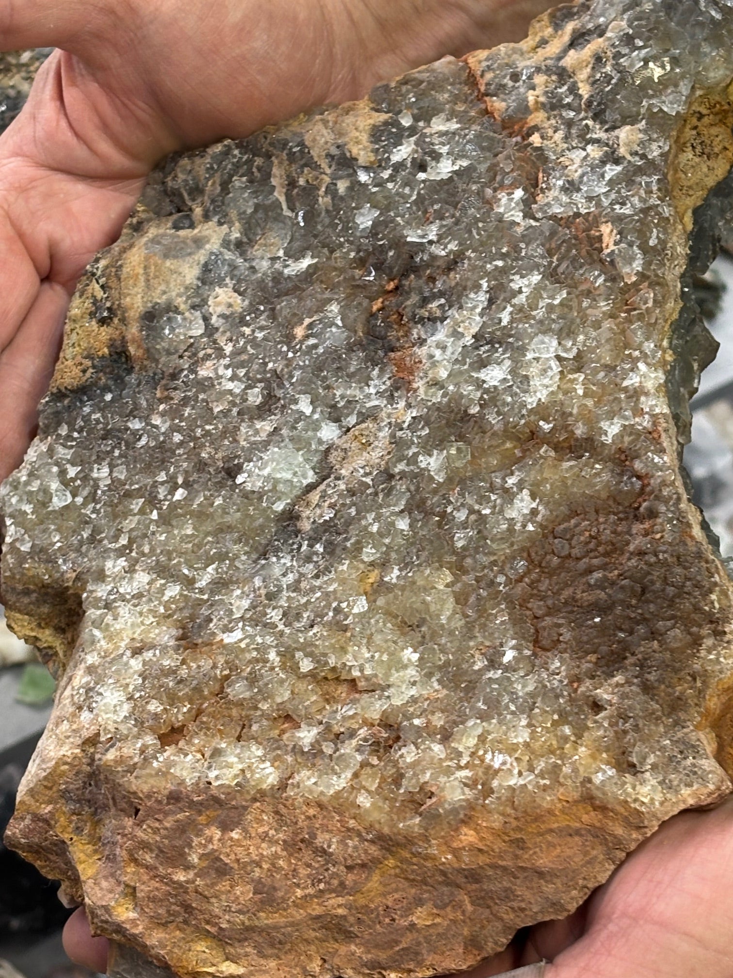 Auch die Rückseite ist voll von Fluorit Kristallen in den verschiedensten Farben & teilweise mit glitzerndem Quarz überzogen.