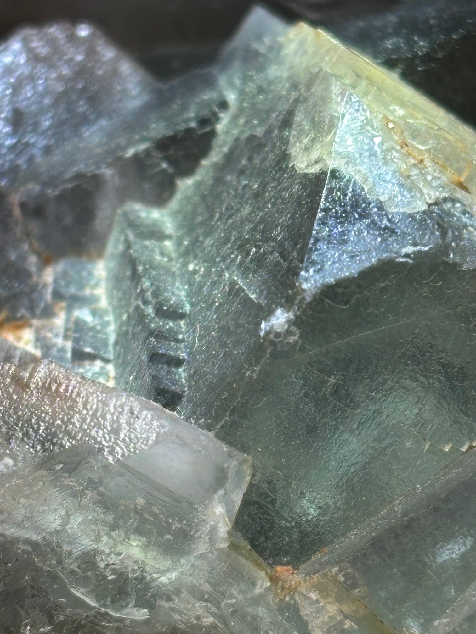 Unter der UV Lampe wird das Museumsstück dunkelblau, teilweise hat der Fluorit eine intensive Transparenz.