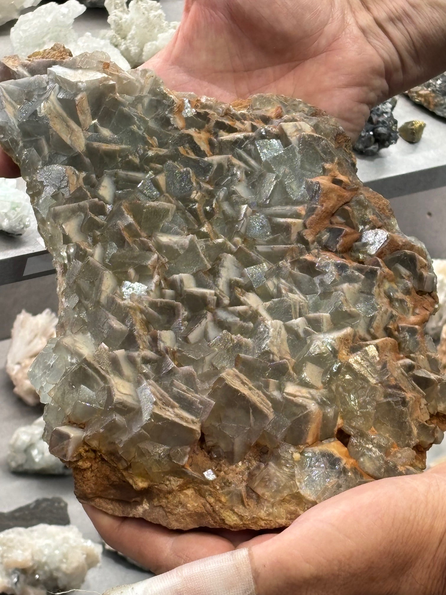 Wunderschöne riesige Fluorit Kristall Stufe mit grünen Würfel & Oktaederkristallen, sowie toller teilweise violetter Zonenbildung.