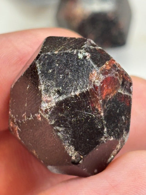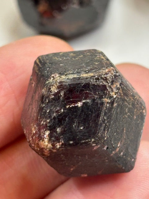 Wunderschöner völlig naturbelassener Almandin Granat mit außergewöhnlich schön erhaltener Kristallstrukur, sowie der typisch dunkelrot violetten Farbe, sehr transparent & lichtdurchlässig. (Edelsteinqualität)