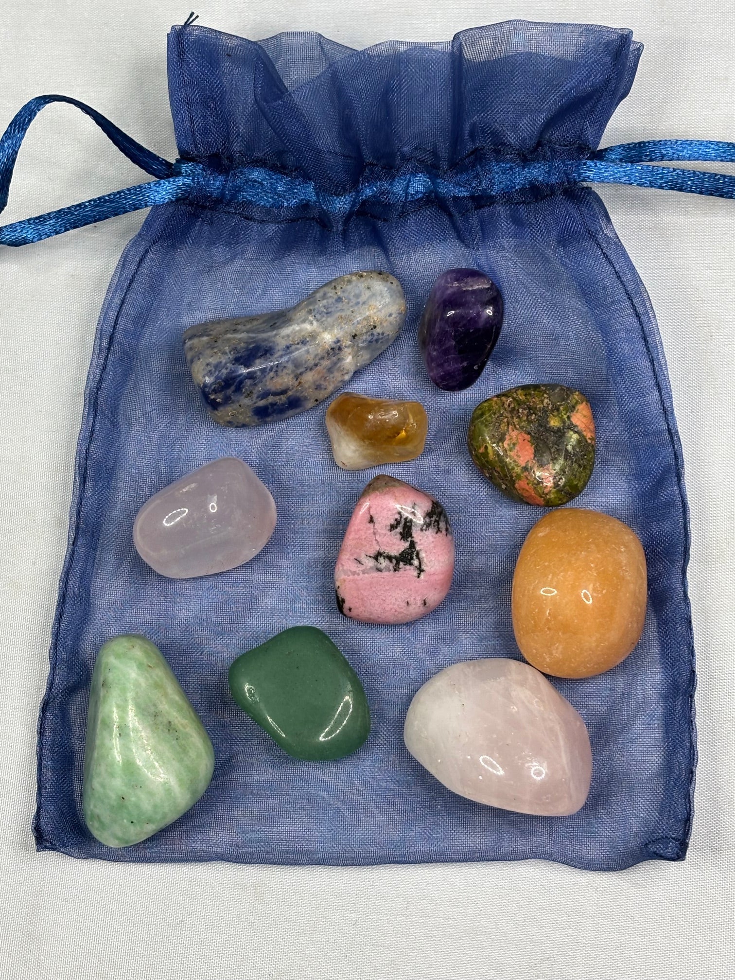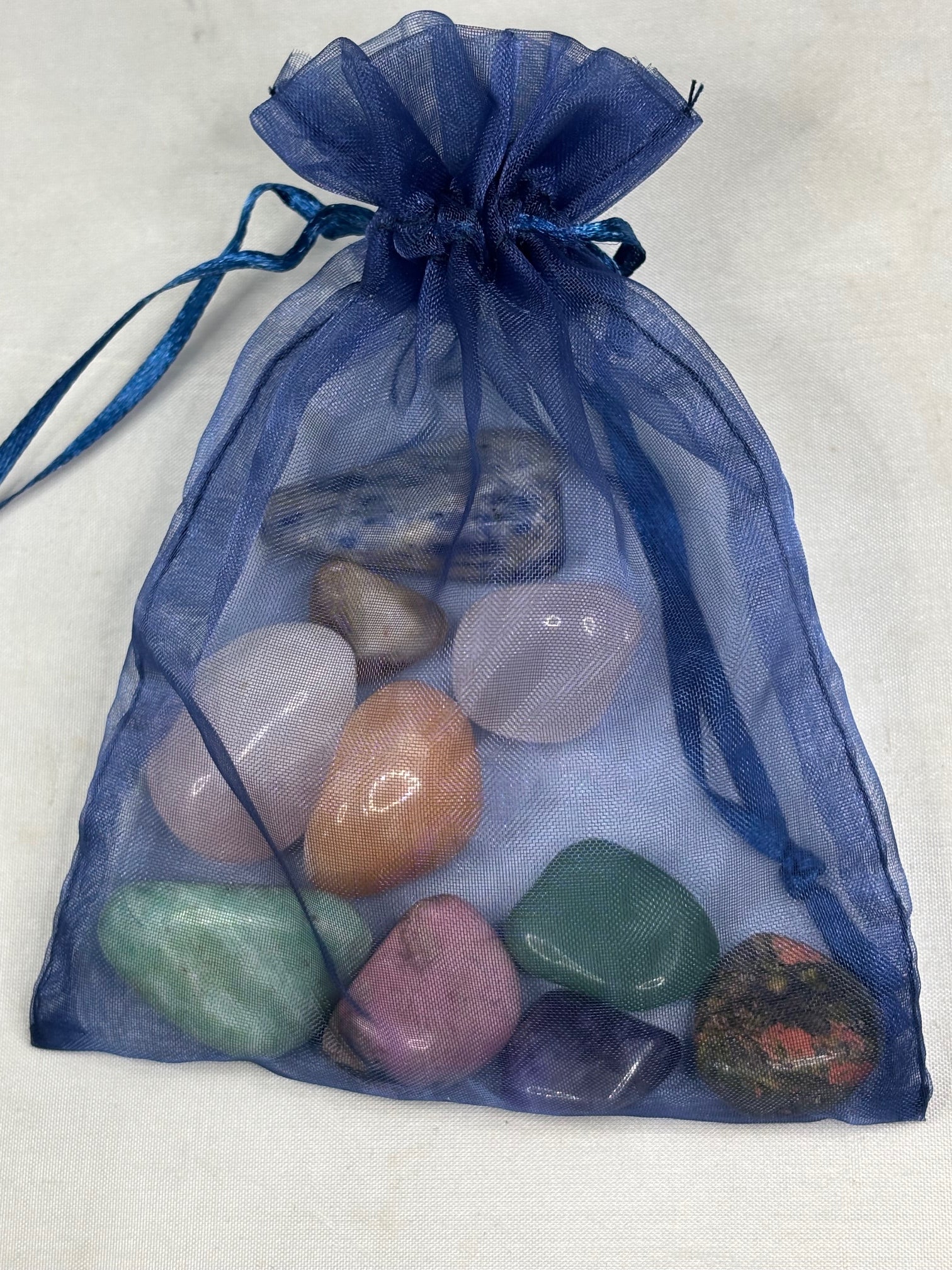 Jede Mischung wird in Organza Geschenksbeutel & mit ausführlicher Beschreibung der Zusammensetzung, richtigen Anwendung sowie Wirkungsweise geliefert. Bei der hier abgebildeten Heilsteinwasser Mischung handelt es sich um Harmonie & inneres Gleichgewicht. Jede Mischung besteht aus ca. 7-10 Edelsteinen & Halbedelsteinen.