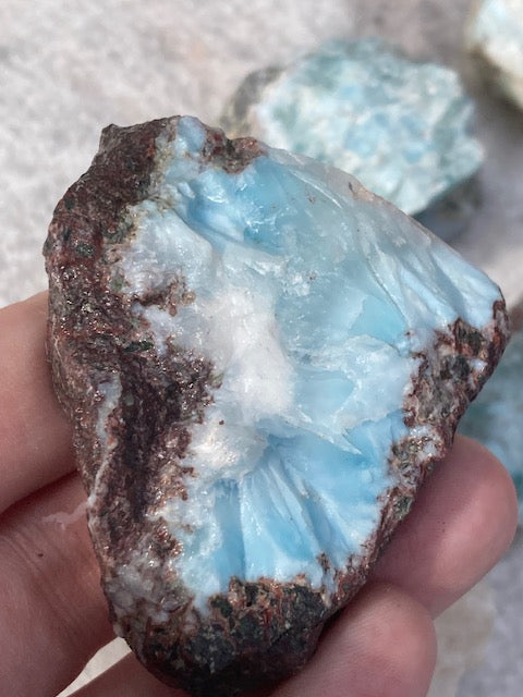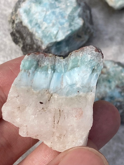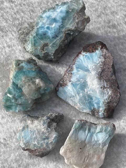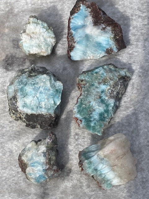 Larimar Rohsteine in sehr guter Qualität, blauer Pektolith, Delphinstein, Atlantisstein