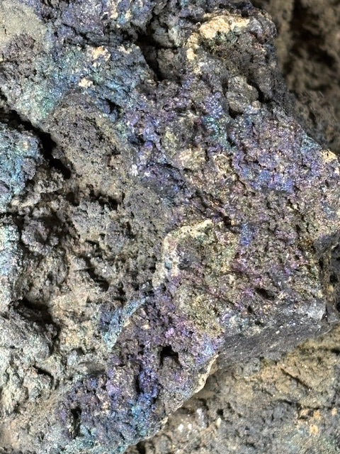 Sensationeller Neufund aus Deutschland (Eifel), Lavasteine mit Bornit Buntkupfer außen, deshalb der regenbogenfarben irisierende Schimmer.