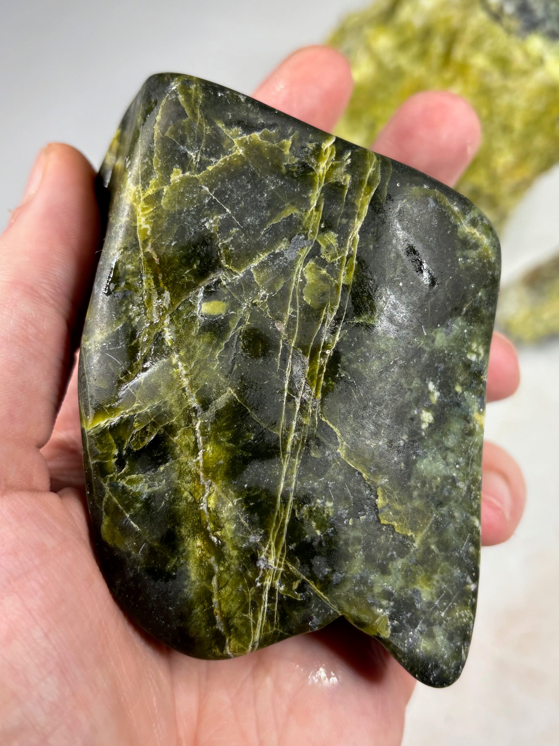 Lizardit auch Norwegische Jade genannt macht uns fröhlicher, energiegeladener, lebendiger & wirkt sehr erfrischend.