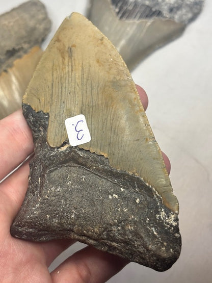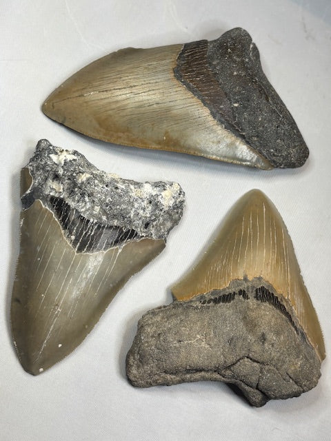 Sehr große außergewöhnlich gut erhaltene, "rasiermesserscharfe" Megalodon Haizähne in dieser Größe & Qualität eine wahre Rarität zum Großhandelspreis.