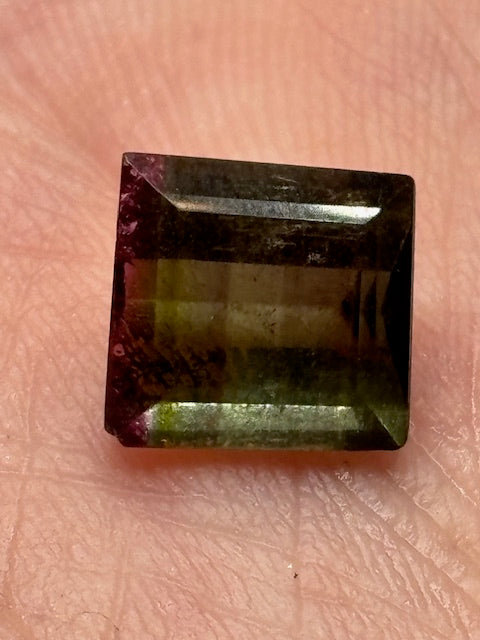 Die facettierten Edelsteine haben die typischen grün, rosa- roten Farbtöne von Elbait & wurden im Kissenschliff händisch facettiert.