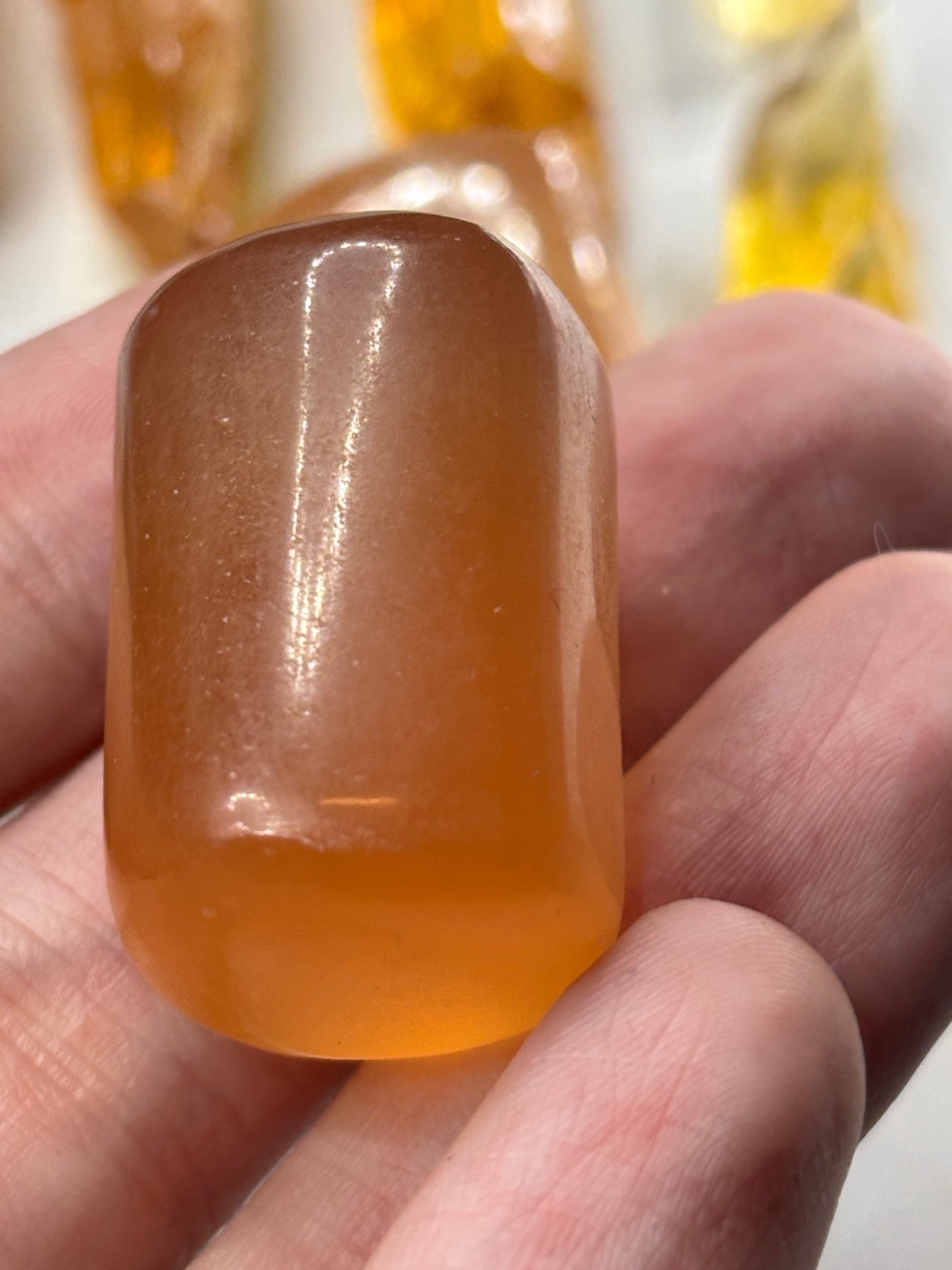 Orangencalcit Kristall oder Trommelstein, in bester Qualität Honigcalcit