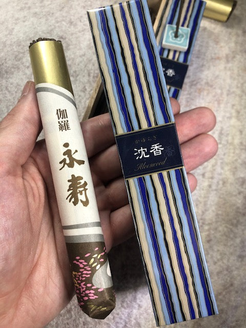 Sehr wohlriechende japanische Räucherstäbchen mit echtem Adlerholz, ohne Bambuskern & 100% natürliche Inhaltsstoffe.