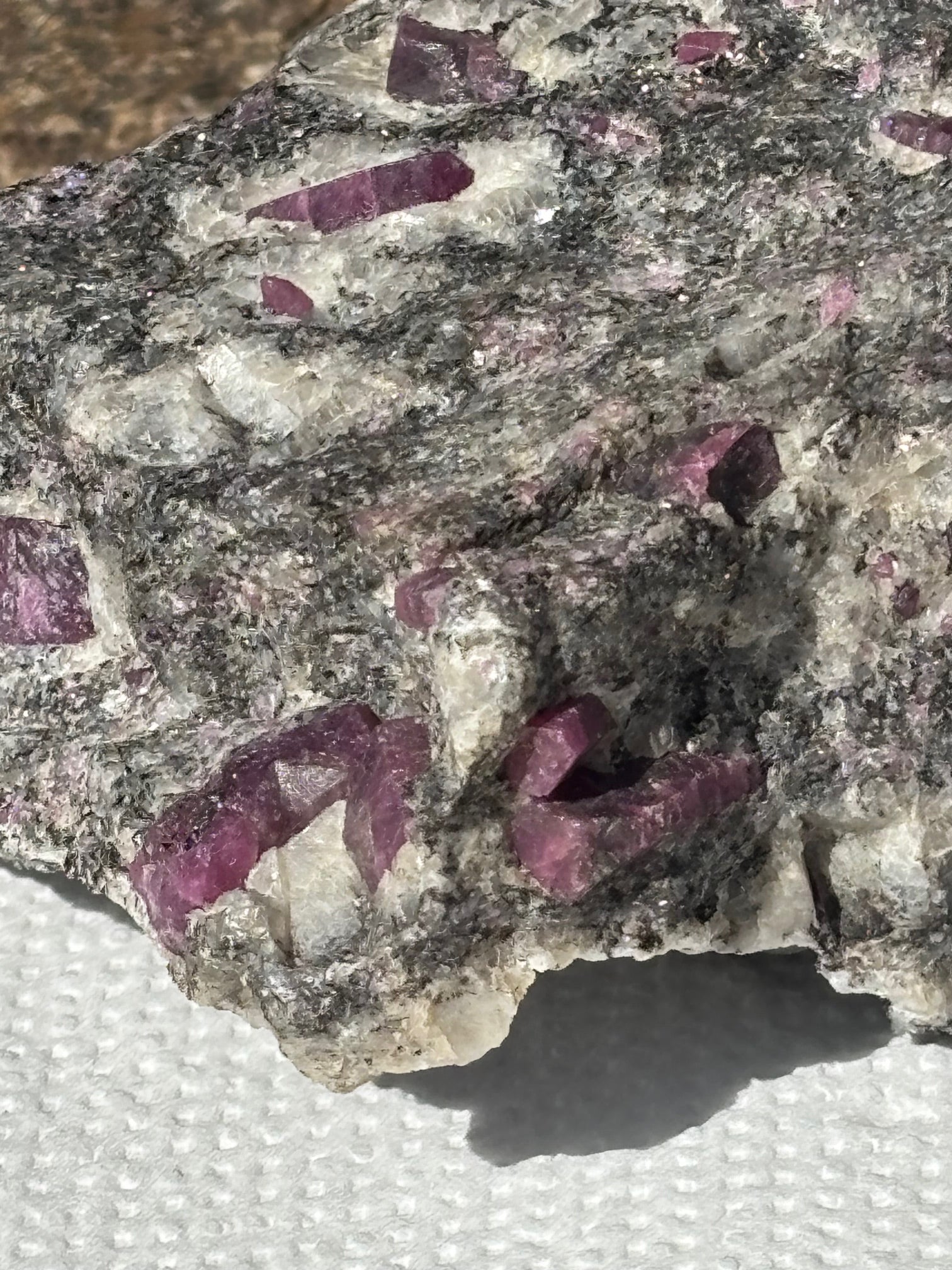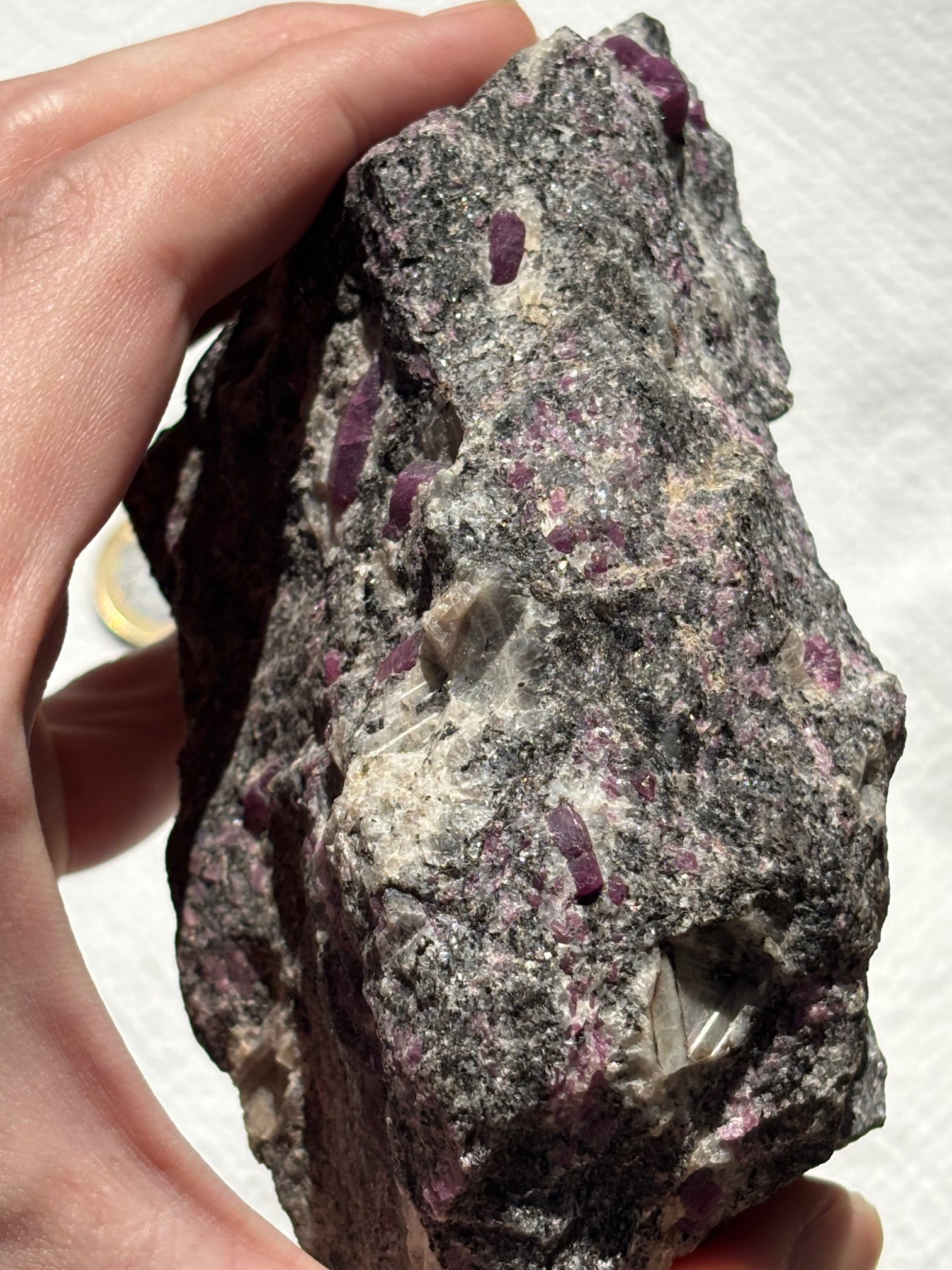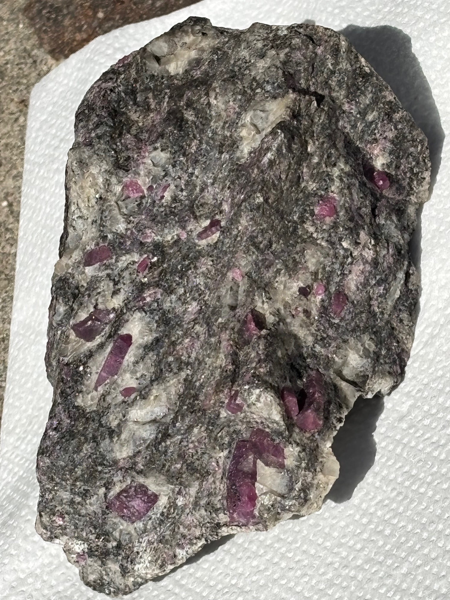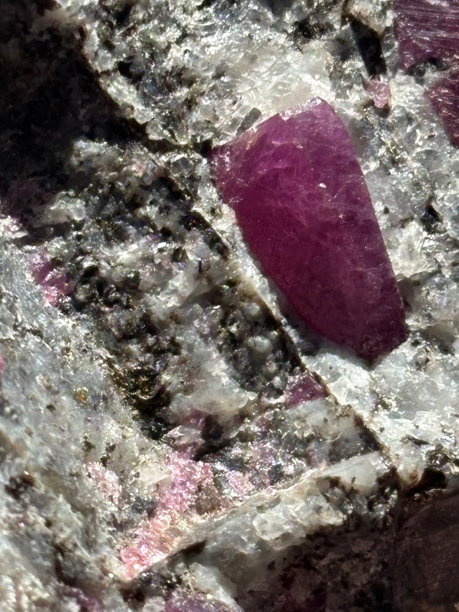 Einige Rubin Kristalle hätten auch eine ideale Größe & Transparenz um sie raus zunehmen & zu Facettieren. Der komplette Stein ist sehr reich durchzogen mit dem roten Edelstein.