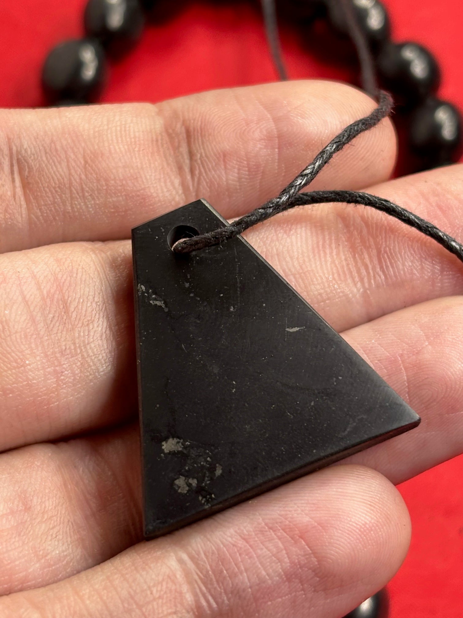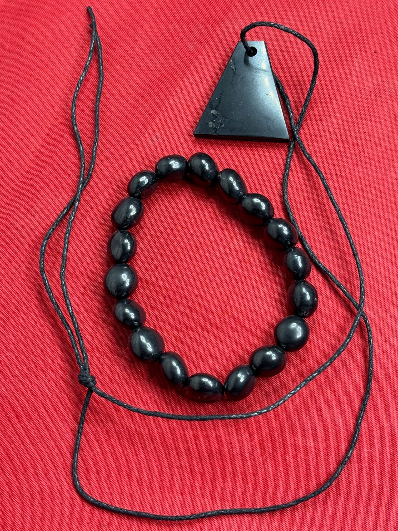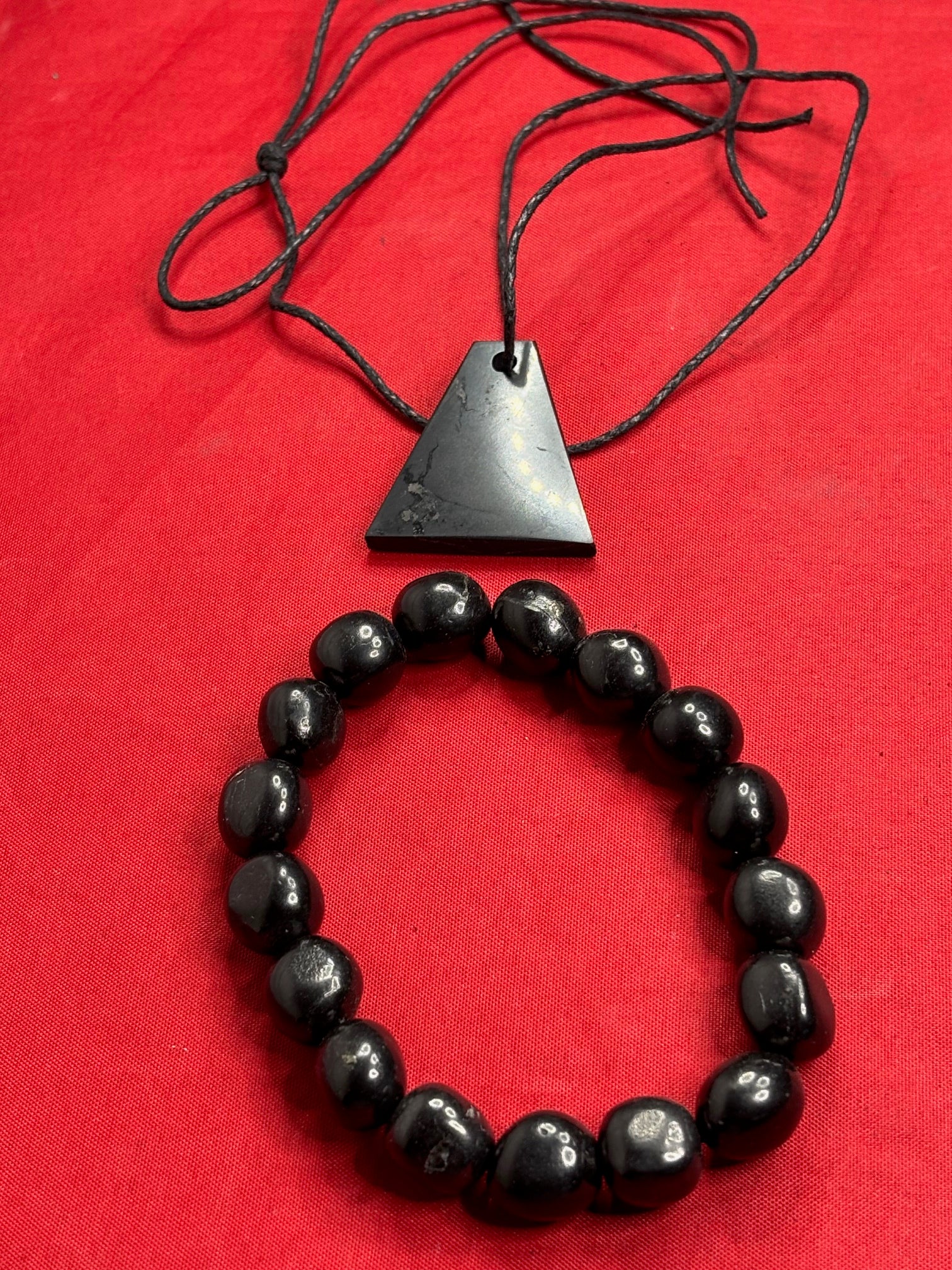 Entdecke die kraftvolle Eleganz von Schungit – als stilvolles Armband oder glänzender Dreieck-Anhänger für energetischen Schutz im Alltag.