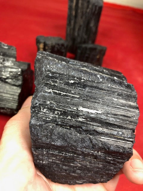 Sehr dekorative völlig naturbelassene schwarze Turmalin Kristalle ideal als Heilstein, Geschenk, Deko, Mitbringsel, für Sammler, Kinder, die Vitrine, Esoterik, zum Basteln, Herstellen von Schmuck wie Anhänger & vieles mehr.