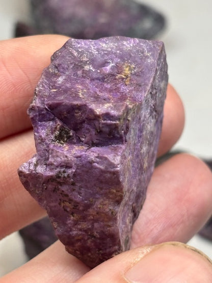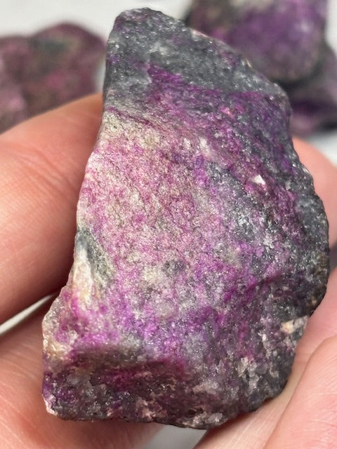 Sugilit ist ein sehr kompakter Edelstein daher bestens zum weiter Verarbeiten geeignet. (Schleifen, Polieren, Facettieren, Schmuckherstelung wie Anhänger, etc.)