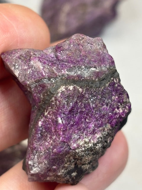 Sehr schöner Sugilit Rohstein mit intensiven purpur- viollett sowie blauen Farben & einzigartigen Mustern.