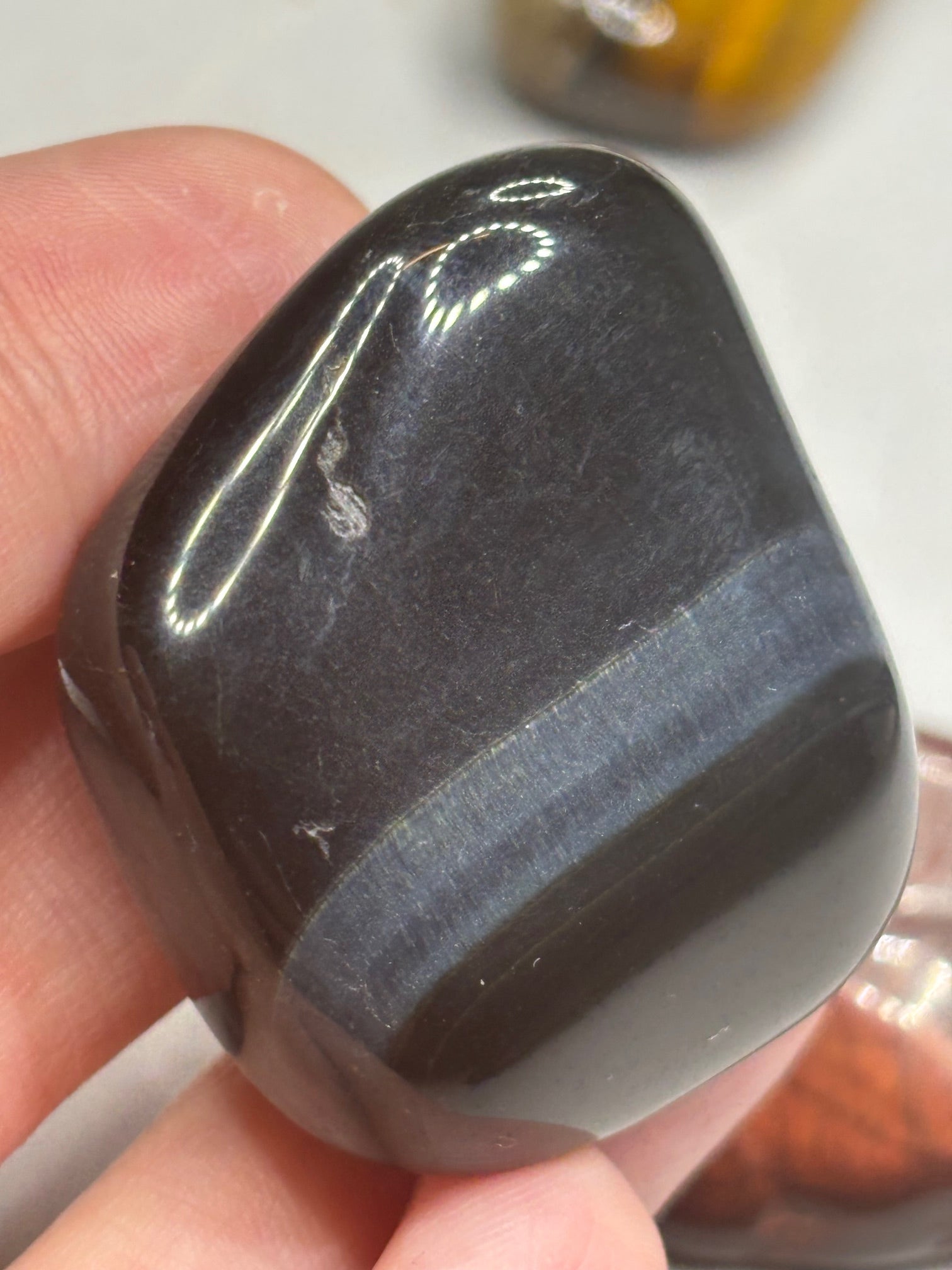 Wunderschöne Tigerauge Trommelsteine in den Farben gelb, rot oder blau mit intensivem Katzenaugeneffekt. (Chatoyanz)