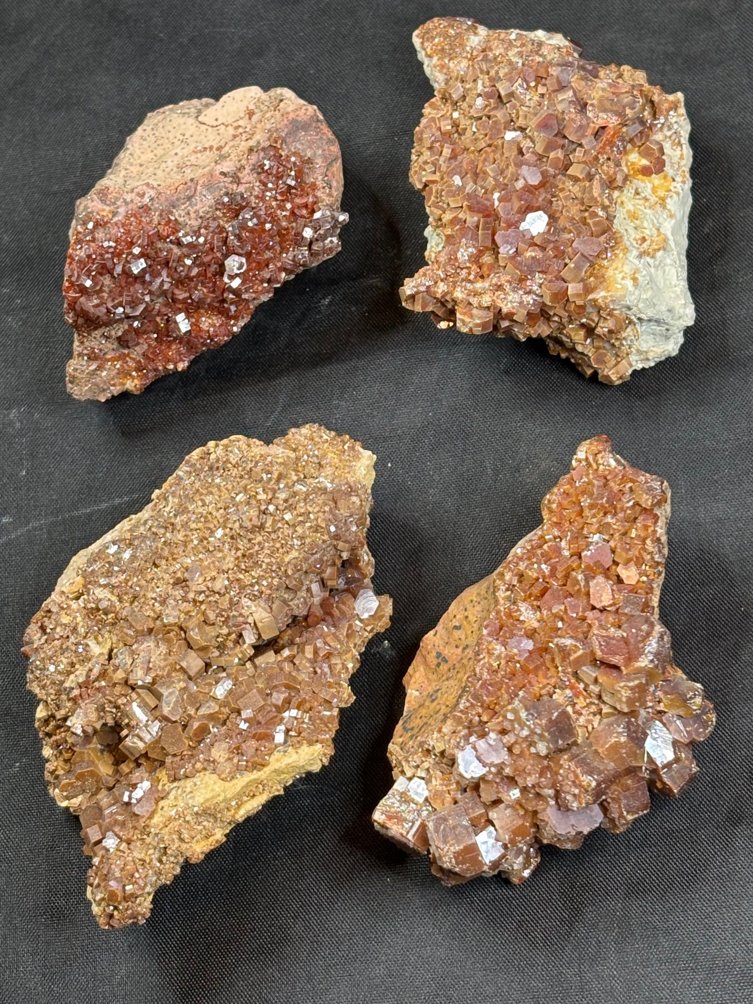 Wunderschöne hochglänzende Vanadinit Kristalle teilweise sogar rein ohne Matrix oder auf Baryt gewachsen in bester Qualität.